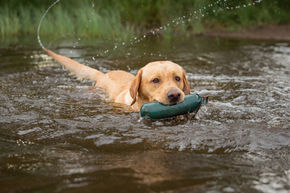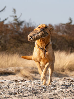 „Der junge Rüde zeigt großes Interesse an allen Menschen und der gesamten Umwelt, er spielt und apportiert mit Begeisterung, durchläuft den Test interessiert und sicher.“